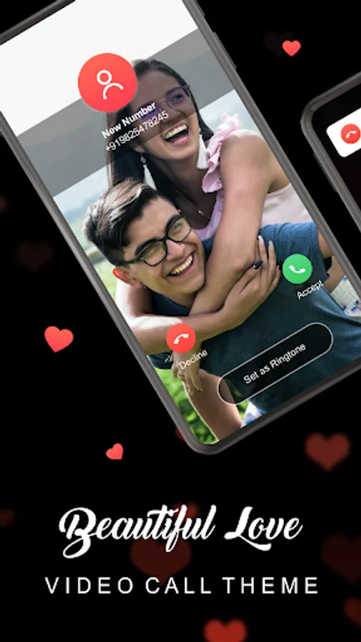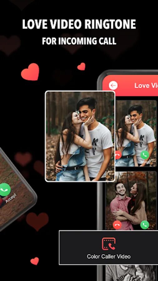 Love Video Ringtone For Incomming Call allows you to use your own incoming call screen with cool full-screen videos instead of a boring little photo. However, in addition to the video, it is possible to set a full-screen photo in HD quality.