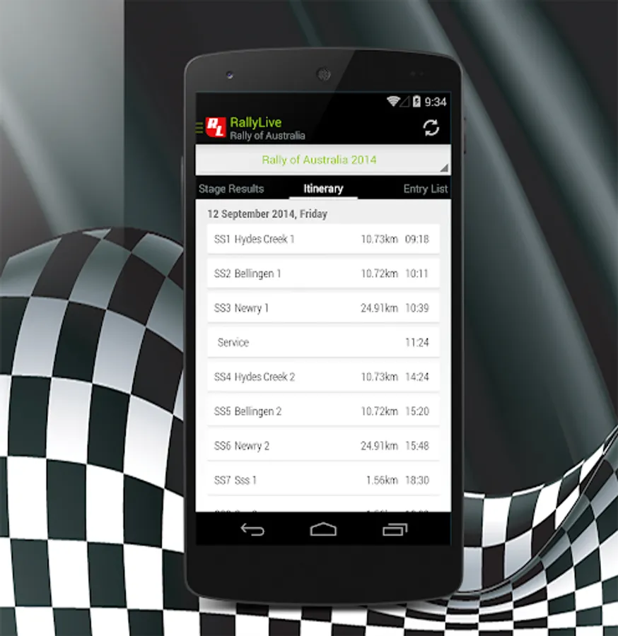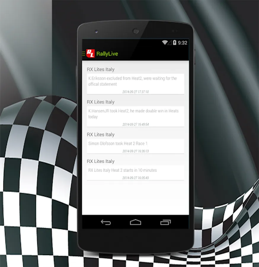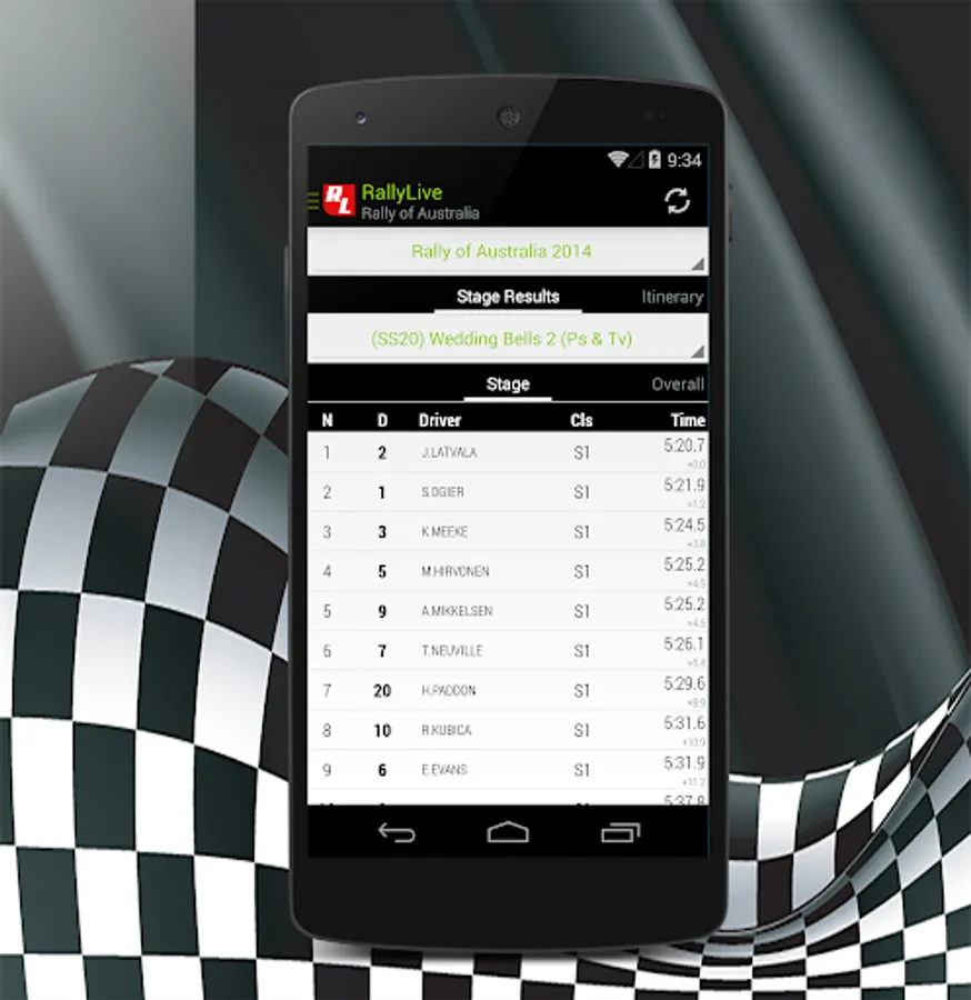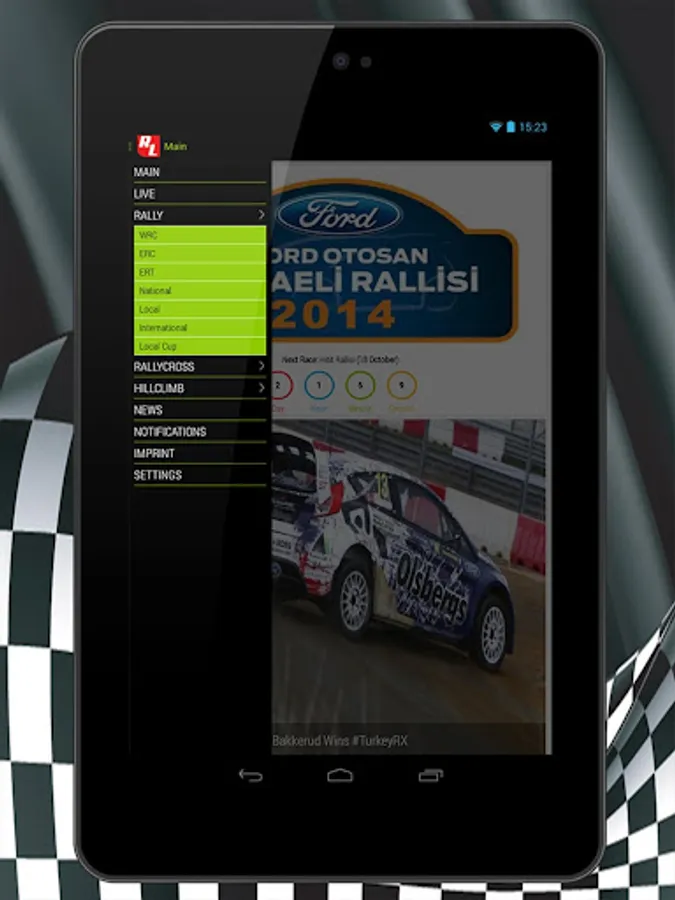 RallyLive is application that gives online results, flash news, notifications from rallies, hill-climb races and rallycross races .