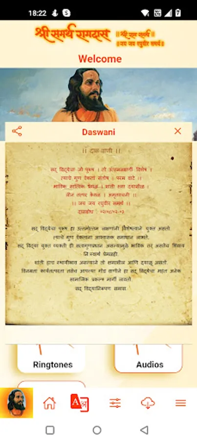 This app provides audio and literature on teachings of Swami Samarth Ramdas