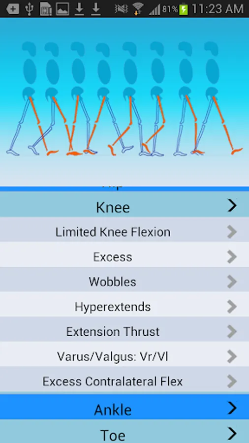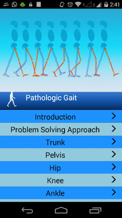 ■ This app is based on the Rancho Observational Gait Analysis System, a well-known method for teaching physical therapists, physical therapist assistants, students, and other health care professionals a systematic approach to first analyzing normal gait and pathologic gait.