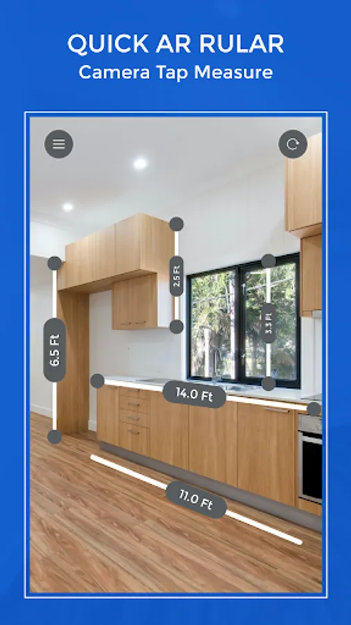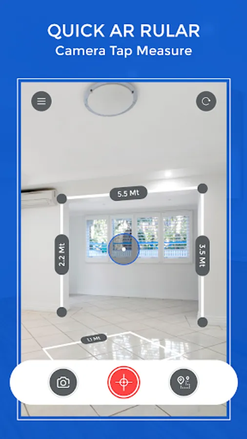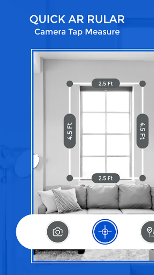 AR Ruler - Tape Measure Camera app uses augmented reality technology (AR) to tape measure the real world with your smartphone’s camera. Target aim on the detected plane and start to use ar tape measure tool.