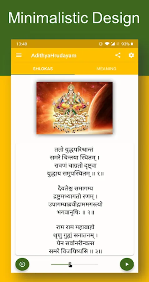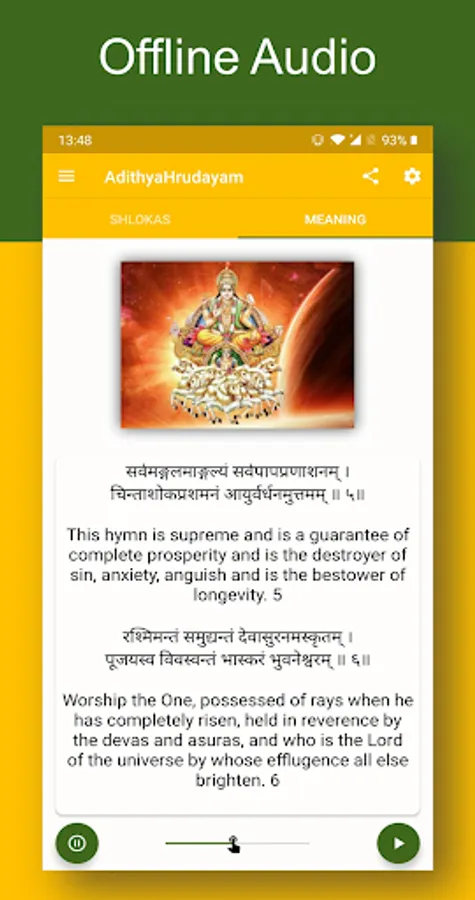 Enjoy the powerful AdityaHrudayam Stotram and please do let us know if you have any comments or suggestions. If you liked the app, please do give us a positive rating in the play store.