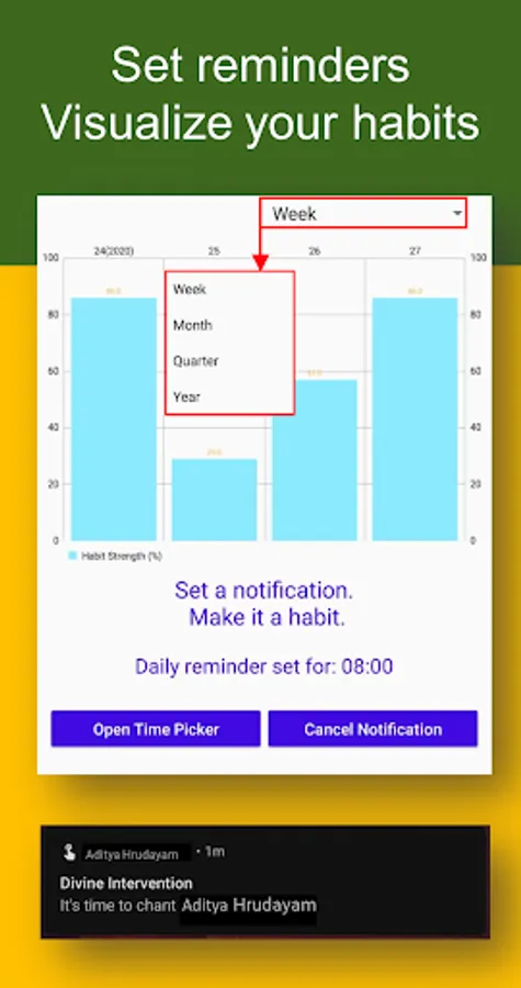 🚀 You can set reminders and monitor your daily chanting habits too. The habit chart motivates you to not break the chain and help you chant the shlokas without fail.