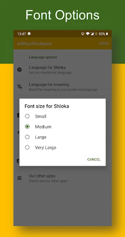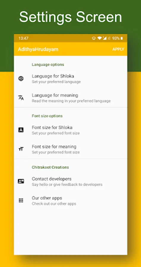 🚀 The language and font preference for the lyrics need not be specified every time you open the app. Once set, the app will remember your preferences, making it a hassle free experience.
