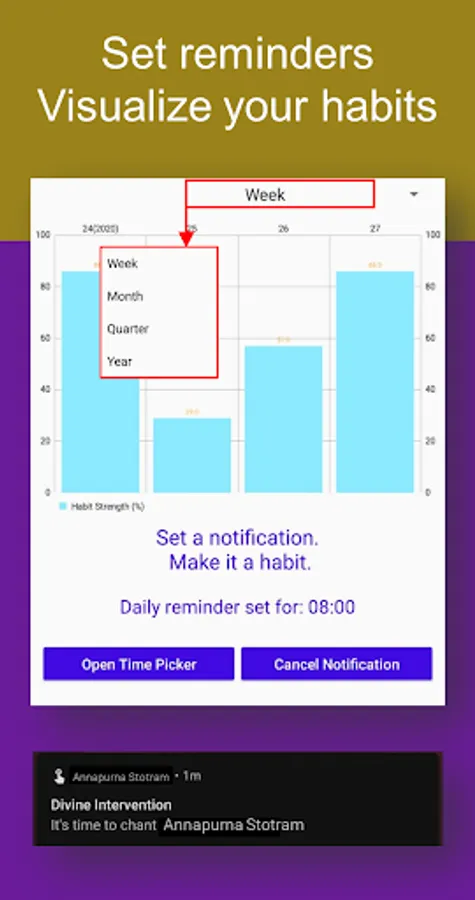 🚀 You can set reminders and monitor your daily chanting habits too. The habit chart motivates you to not break the chain and help you chant the shlokas without fail.