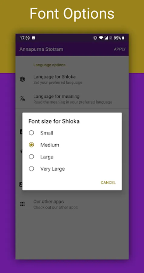 🚀 The language and font preference for the lyrics need not be specified every time you open the app. Once set, the app will remember your preferences, making it a hassle free experience.