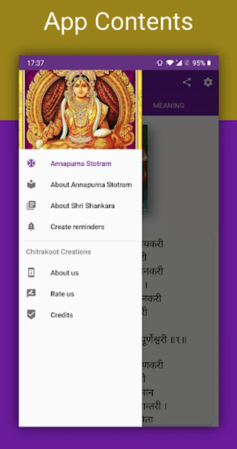 Enjoy the powerful Annapurna Stotram and please do let us know if you have any comments or suggestions. If you liked the app, please do give us a positive rating in the play store.