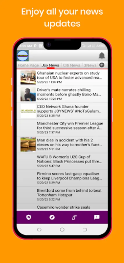 For sports enthusiasts, the app provides a dedicated section that includes both local and international sports news portals. Stay up to date with the latest happenings in Ghanaian football through Ghana Soccernet, or explore the international sports scene with Goal.com. Whether you're passionate about local teams or interested in global sports events, this app has you covered.