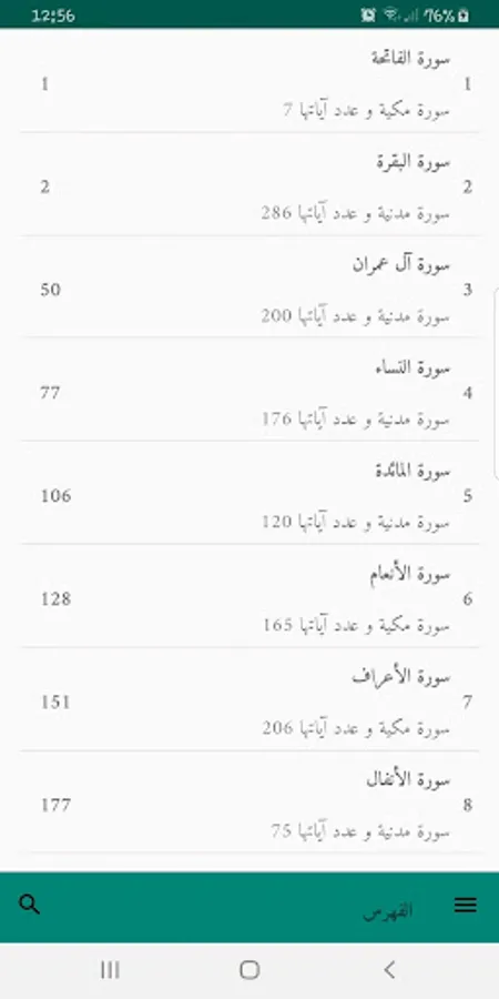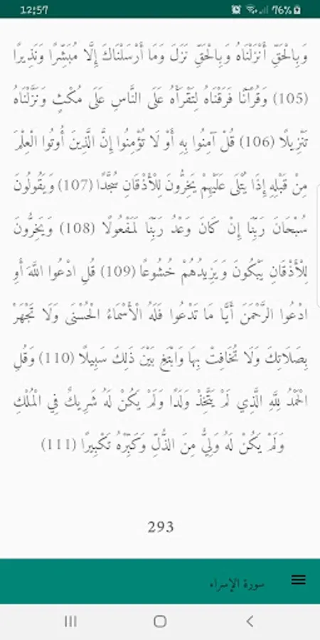 - The ability to select and copy Quran text.