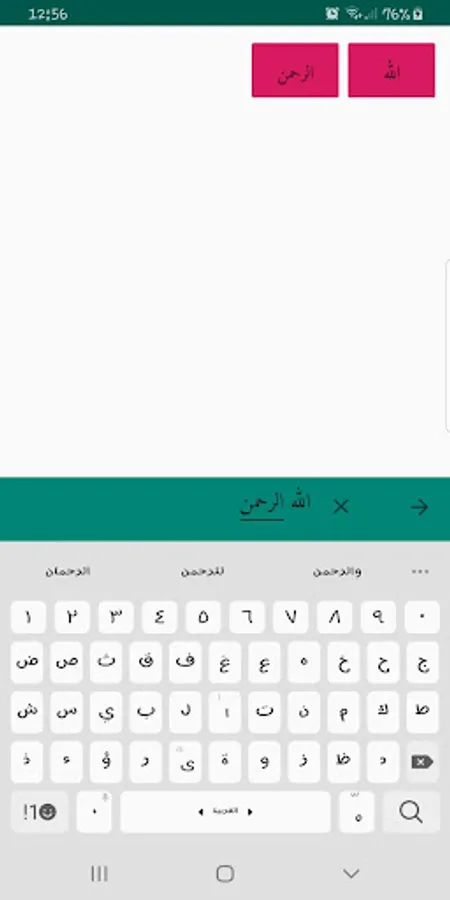 "الرح." yields: "الرحمة"، "الرحمن"و "الرحيم"