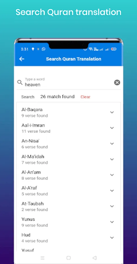 This Quran app contains all the 114 chapters in Arabic and its English meaning