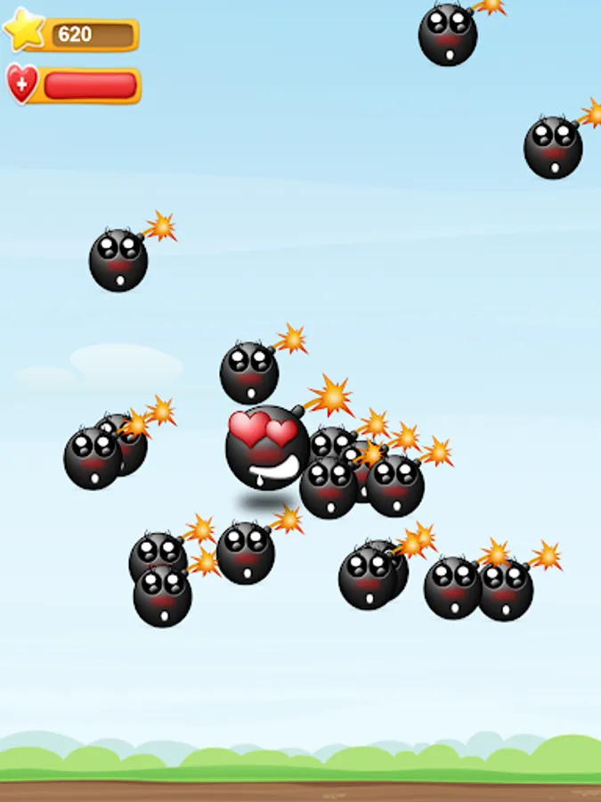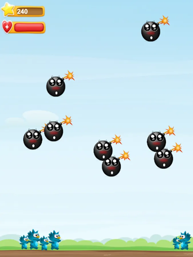 don't let the sweety bomb trick you and reach to the ground. protect your people,get high score,share it and challenge your friends.