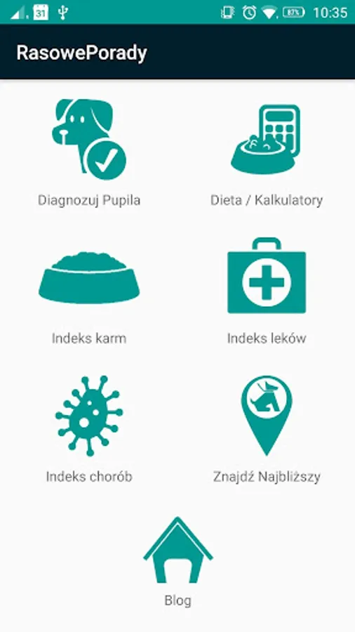 RasowePorady application will help you in the diagnosis of diseases of your pet.