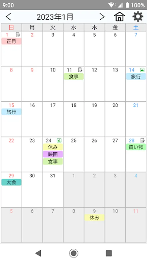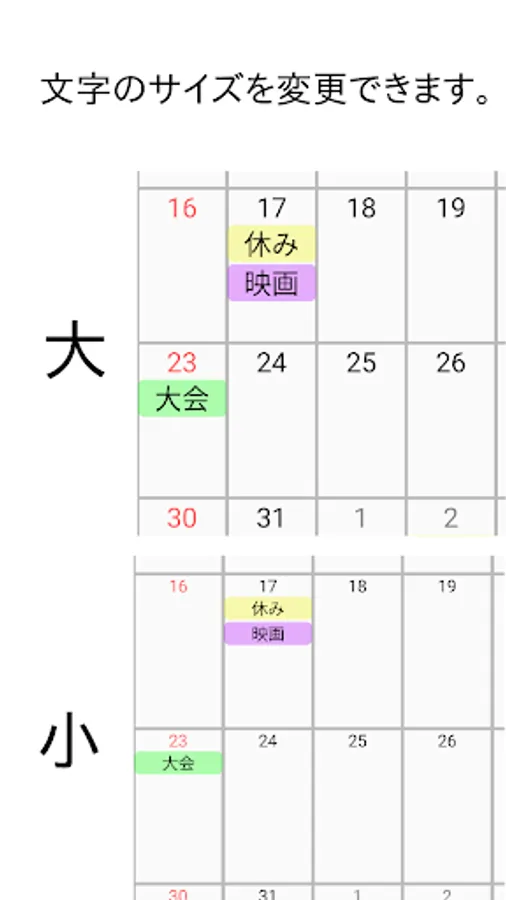 A simple calendar. Eliminate unnecessary functions and operate lightly.