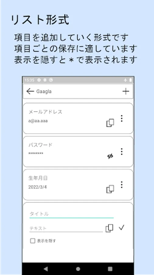 This method adds an item consisting of 'Title' and 'Text' to the list.