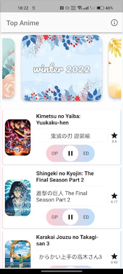 It's a Flutter project containing a Android and Web app displaying the top five animes of the seasons.