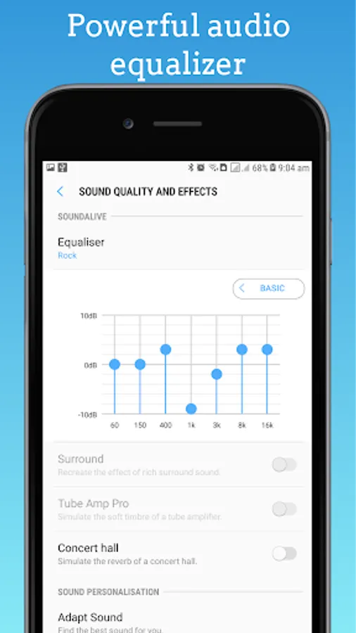 ☆ Powerful audio equalizer makes the music better effects like casual, classic, hip hop, jazz, pop, rock, heavy, folk.