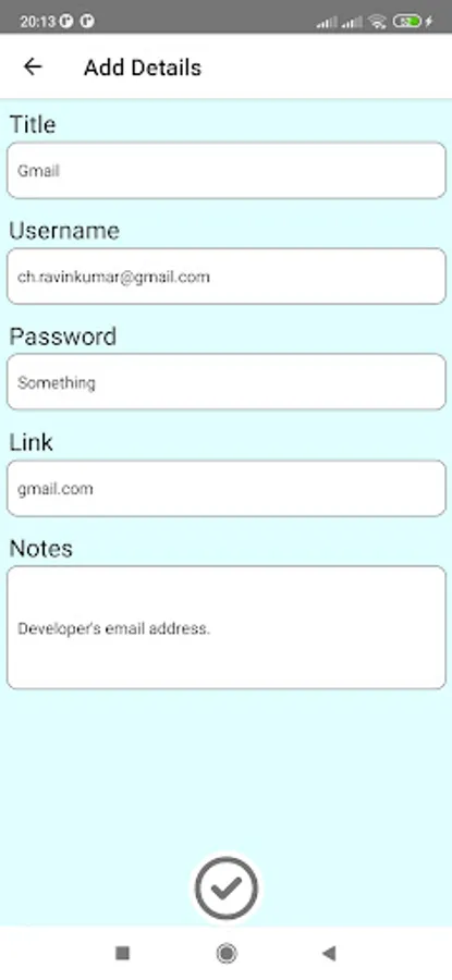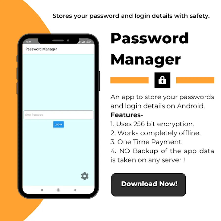 This application stores all of its data in a 256 bit encrypted format on the device itself, thus it works completely offline. Developer Name: Ravin Kumar, Website: https://mr-ravin.github.io