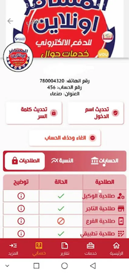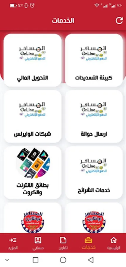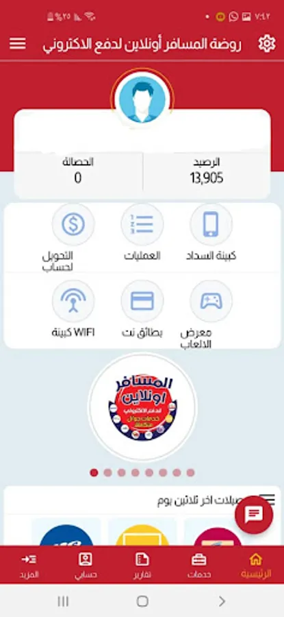 We present to you the “Almosafer Online for Electronic Payment” application, the most unique and diverse in terms of providing services and ease of use, the application specially designed with the latest software technologies for Android devices, supported by the dynamic display feature, and the provision of infinitely diverse, exclusive and unique electronic services created by the experts of the “Almosafer Online Group”, the pioneers in field of smart applications. With the "Al-Mossafari Online" application, it will give you complete control, to manage your balance, your financial portfolio, and your electronic transactions such as payments, bonds and reports. The "Almosafer Online" application is characterized by ease of use and speed of implementation, supported by the "offline" feature that saves the user from consuming and rationalizing the Internet. It is also supported by a single window payment booth to pay off all networks, in an easier and faster way.