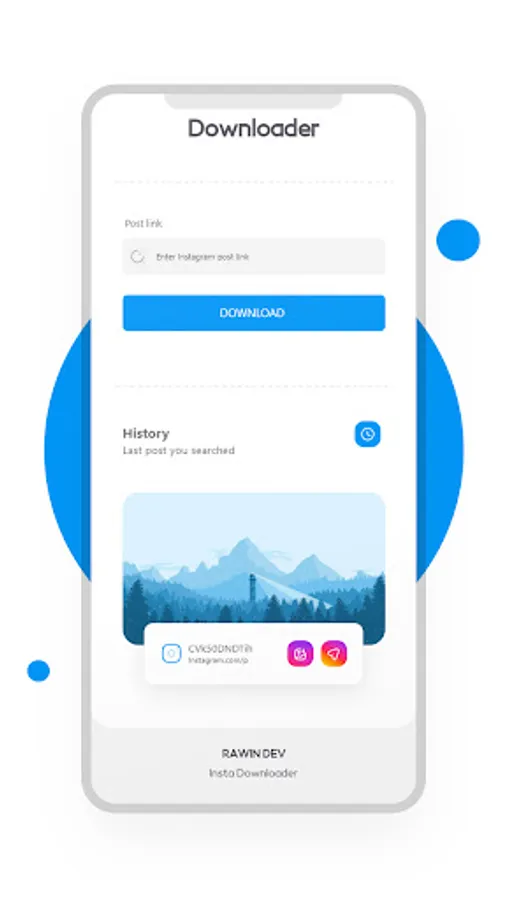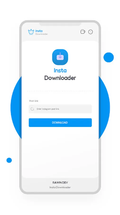 Insta Downloader Rawin Dev is a free app to download any media like video or image from instagram without any login access