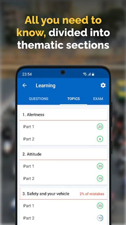 π different learning methods: by topics or in different modes, thanks to which thousands of users have passed their driving test on the first try - effortlessly and for free!
