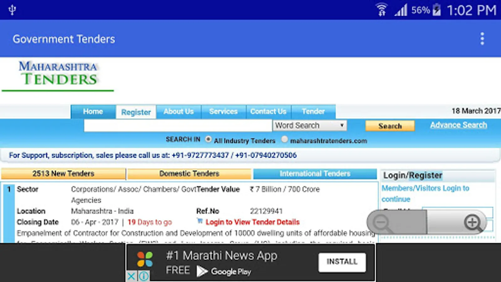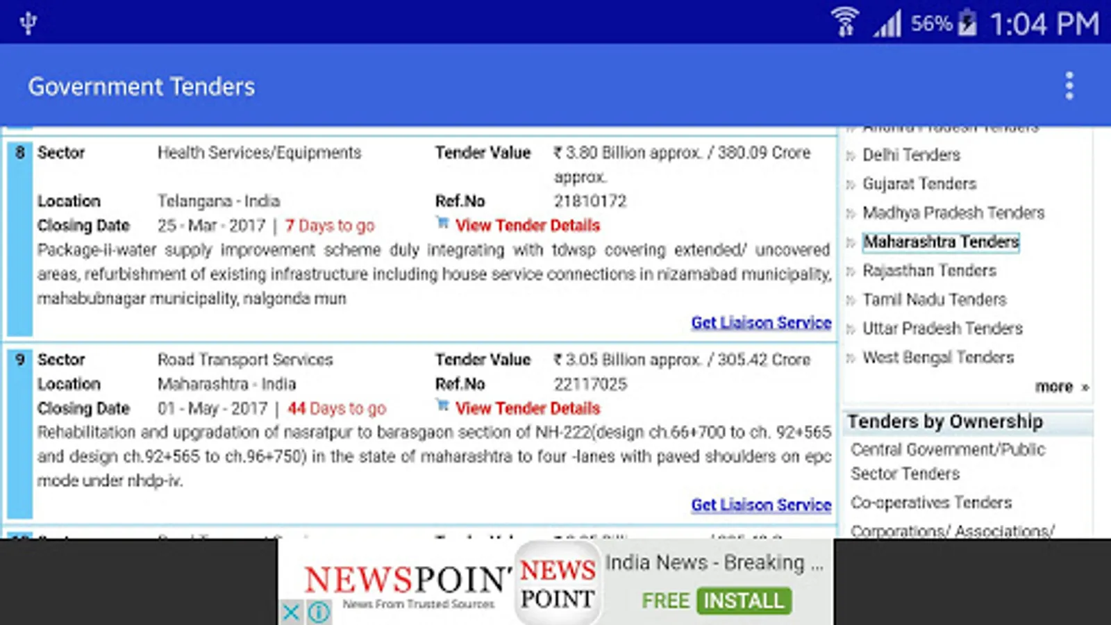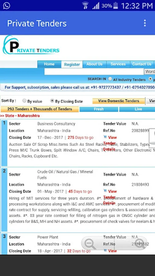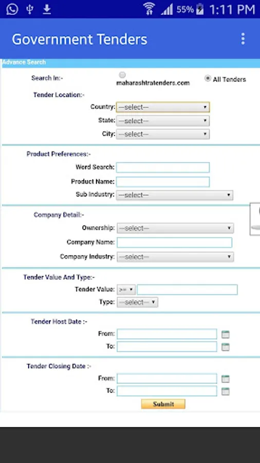 "E Tender Maharashtra" An Unique Android App For Searching Online Maharashtra Government & Central Government Live Tenders.
