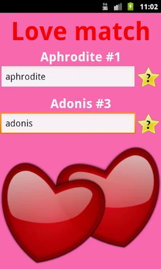 Enter your name and your partner name. After you entered the names tap on the hearts. The results will be calculated and shown on the dialog.