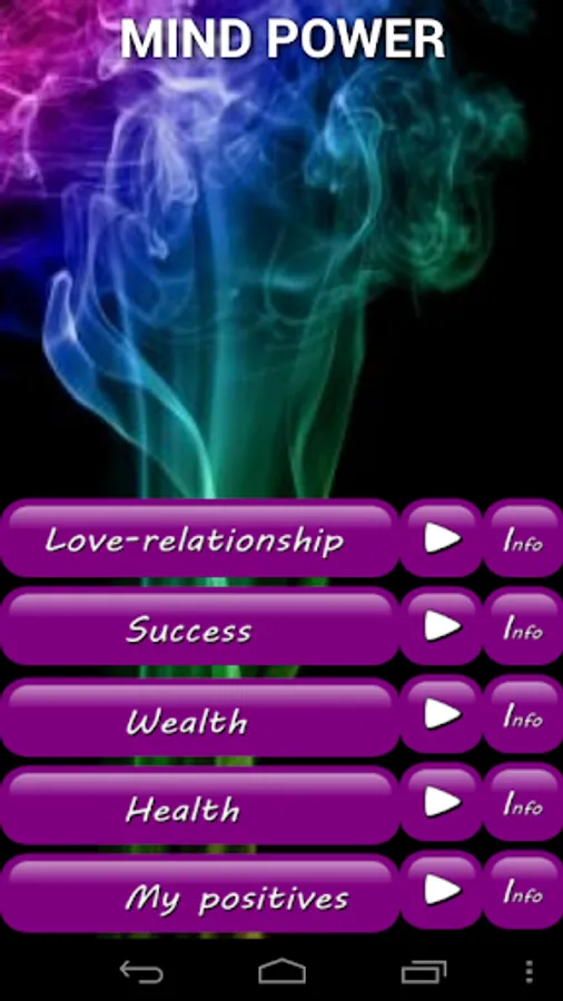 Each slide contains not only affirmation with text, but accompanied with images and sound, since the text is spoken to you.