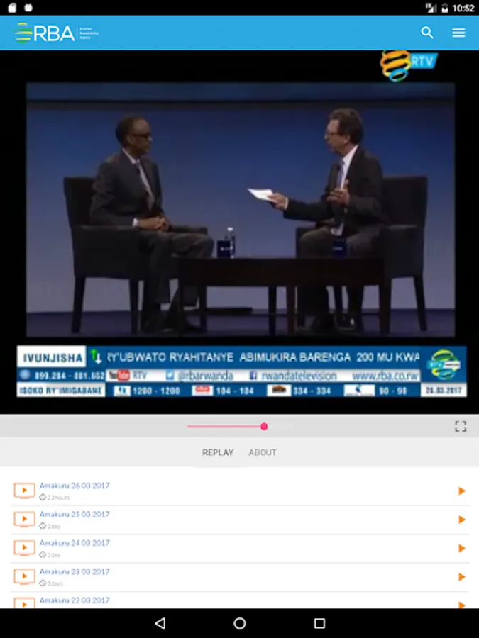 Rwanda Broadcasting Agency (RBA) is a Rwandan Public Broadcaster promulgated by the Law N°42/2013 of 16/06/2013