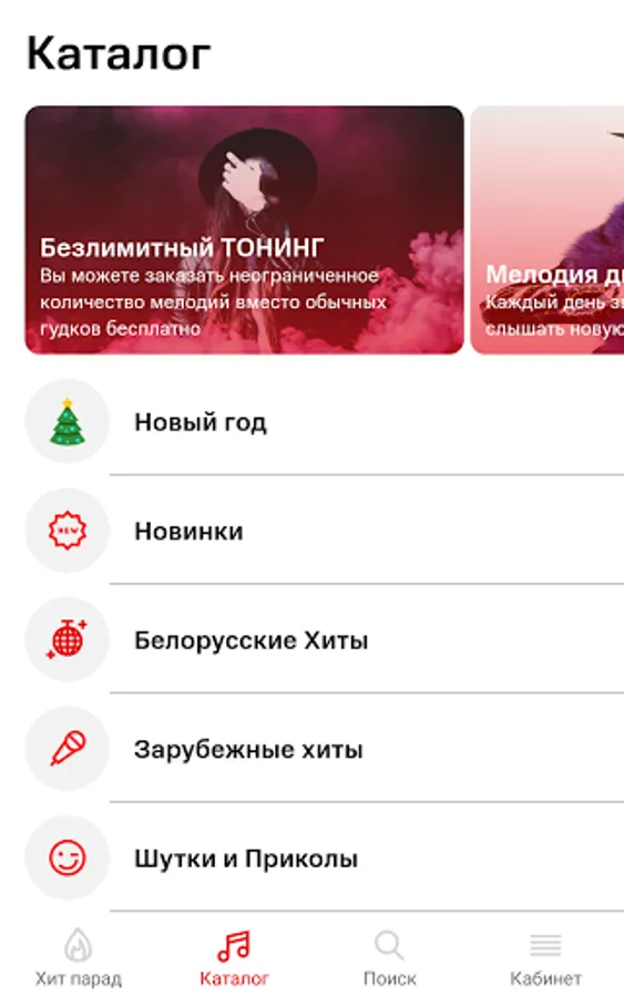 The TONING application is a large catalog of melodies of different musical genres and directions: popular music, chanson hits, funny jokes, new hits from the charts, hits of past years and much more.