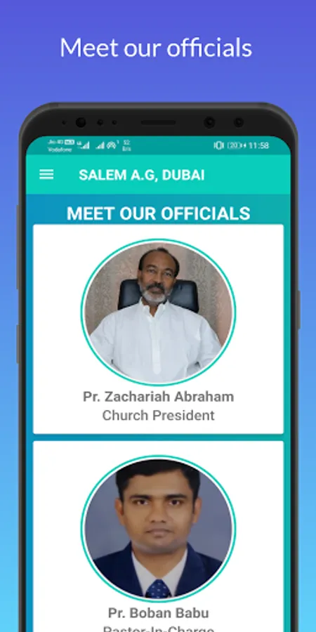Pr. Zachariah Abraham (Sabu) serves as the main Pastor and Pr. Boban Babu as the assistant Pastor, while Br. Roy Baby conduct services at Al Quoz service. Our elder brothers actively support our pastors in leading the services at different outstations.