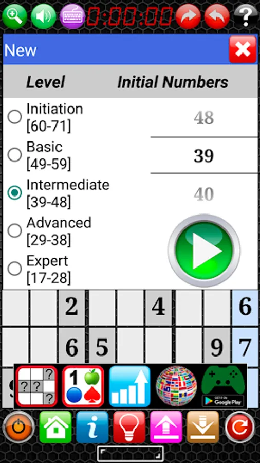 - Generates many different sudoku. You can select the level and the initial amount of fixed numbers.