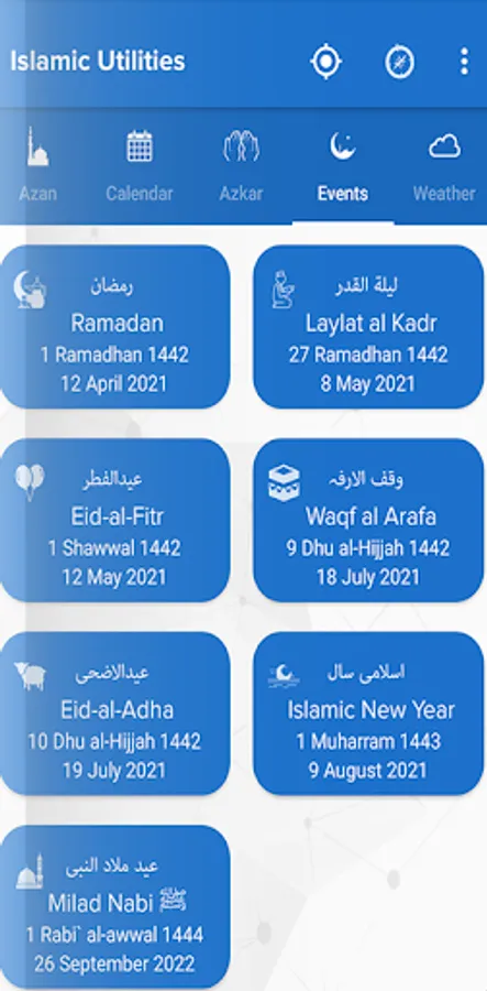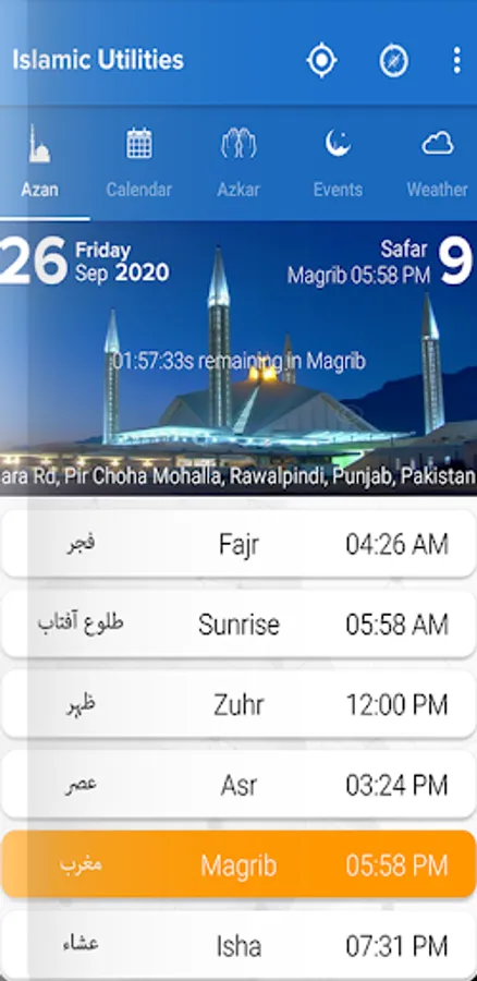 Prayer Timing, Calendar, Azkar, Events and Weather