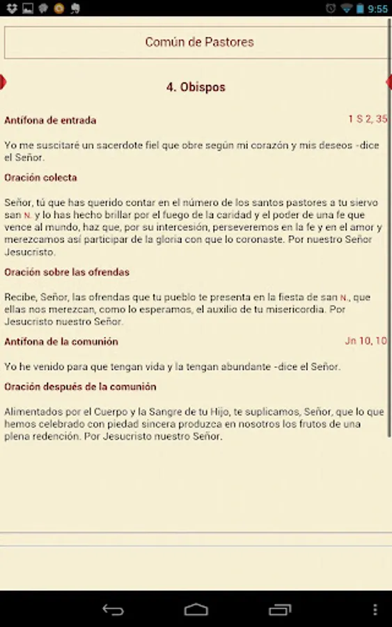 It includes a perpetual liturgical calendar that allows to know the current liturgical day and prepare directly the Mass of the day chosen from here.