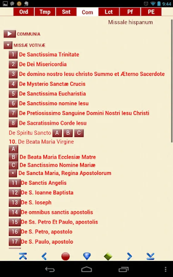 Application with full Roman Missal in Latin and Spanish. We are also including English, Italian, and German texts. So, you'll end having here the following Missals: