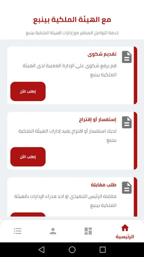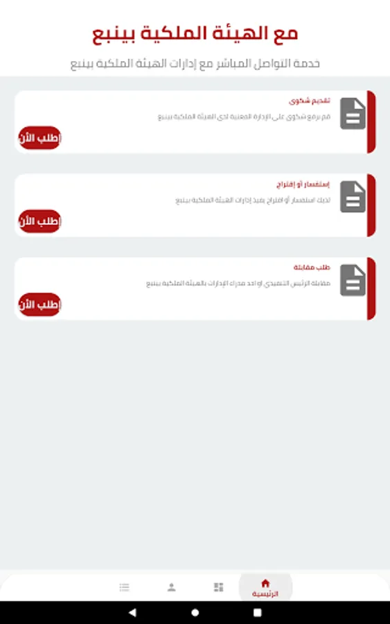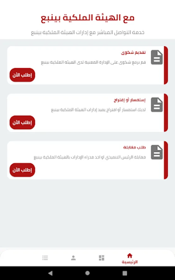 With Royal Commission of Yanbu, an application to communicate with the sectors and departments of the Royal Commission in Yanbu, which includes several services, including submitting a complaint, inquiry, suggestion, and interview request
