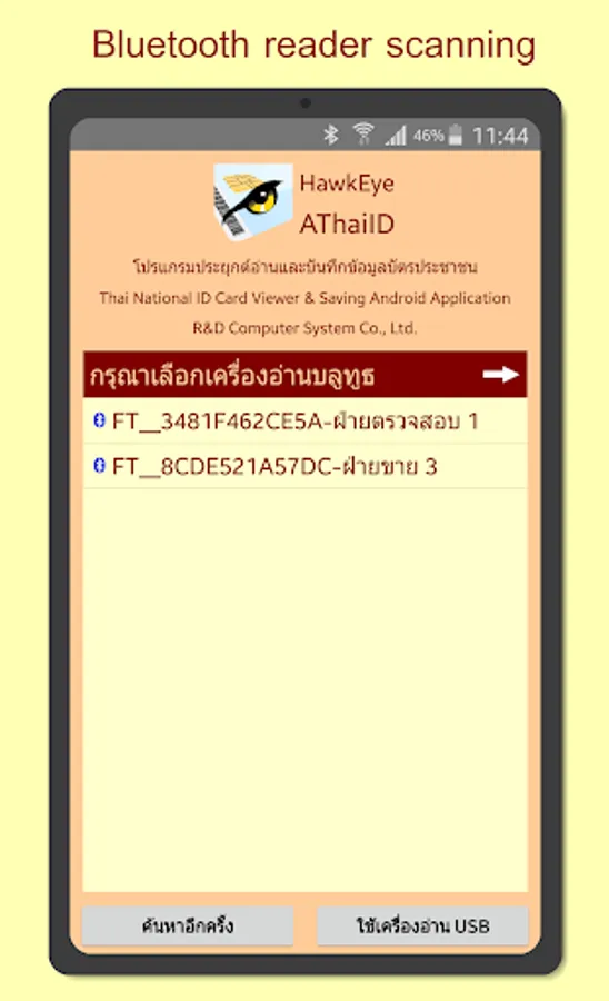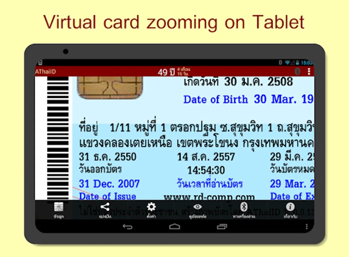 • Please load AThaiID from Google Play to try it. You don't need a card reader for testing.
