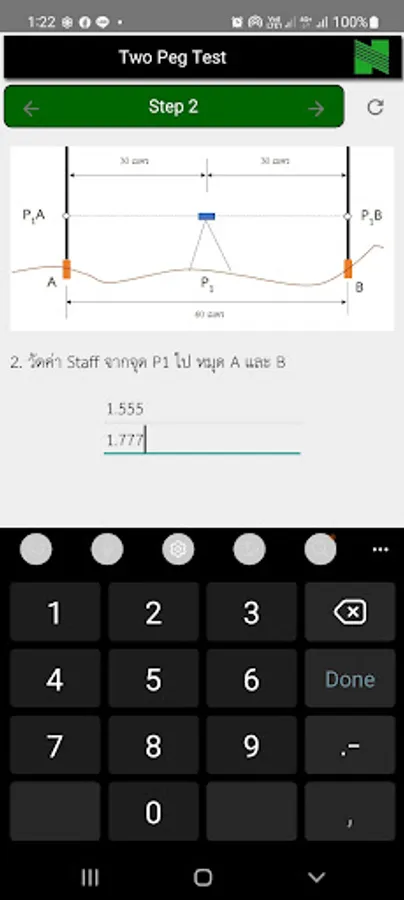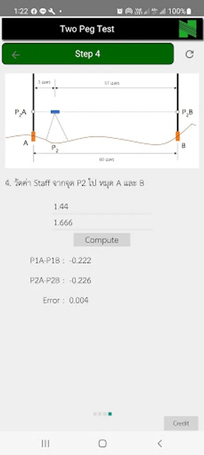 The program calculates the error value of the level camera by means of Two Peg Test.