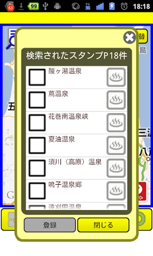 Search such as 100? Distance of hot spring from the current position is also possible.