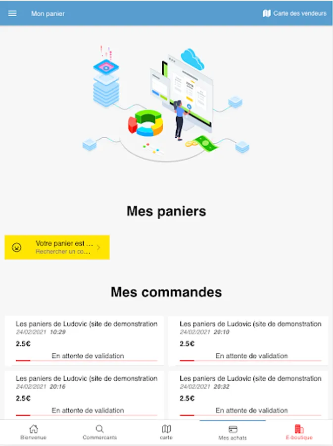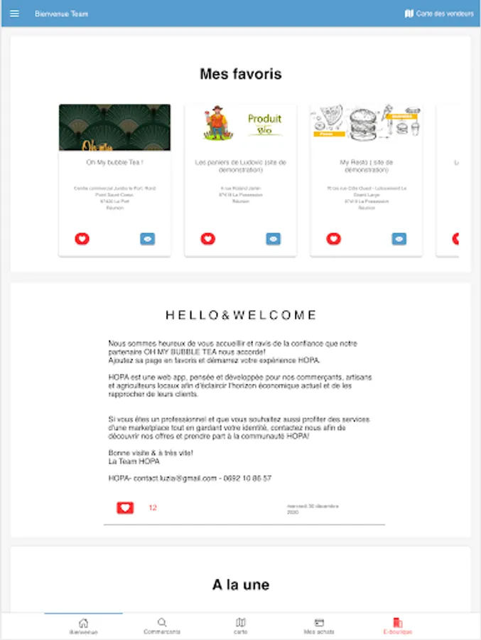 The merchant is fully autonomous in the management of his E-shop: he can create a showcase in his image and has the latest technologies such as real time and geolocation to get closer to his customers and put himself forward digitally.