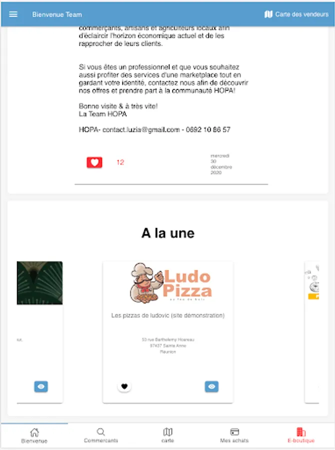 LUZIA offers merchants near us an E-store, available via a multi-platform application (android, ios and web) at a reduced price thanks to a pooling of costs and services.