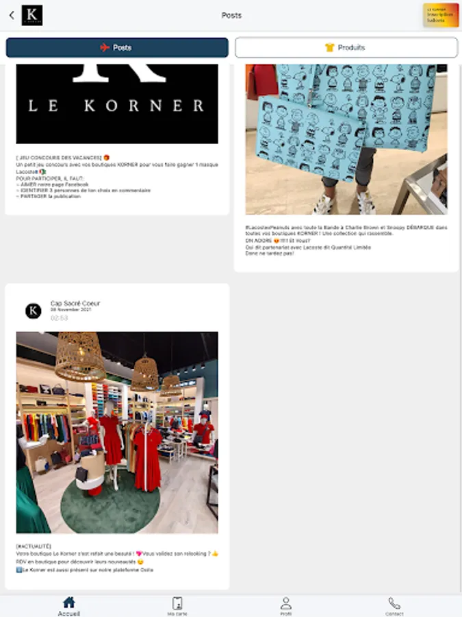 The Korner has chosen a mobile application in order to be able to reward the loyalty of its customers but also to keep them informed of new products and exceptional offers available in stores.