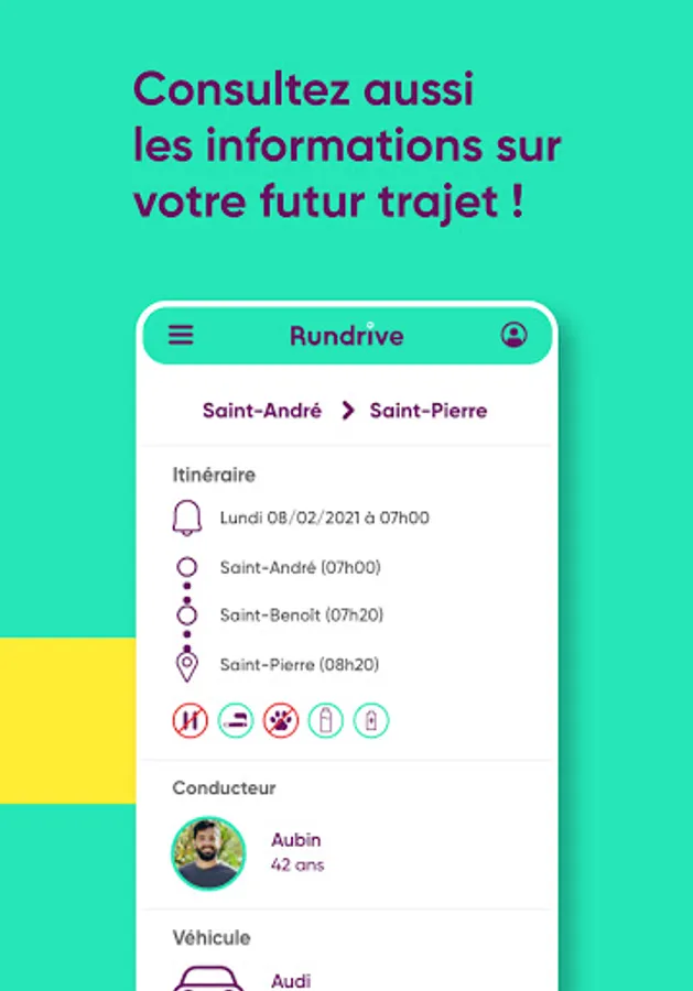 Rundrive makes carpooling accessible to all Reunion Islanders: Share the journey with other users, meet people and reduce your travel costs while reducing the environmental impact of your journey. If you are a driver and have a ride to offer, provide this information on Rundrive. Many passengers are probably making the same journey as you and will be happy to reserve a seat in your car! If you are a passenger and are looking for transportation, consult the carpooling offers that match your needs and contact the driver directly.