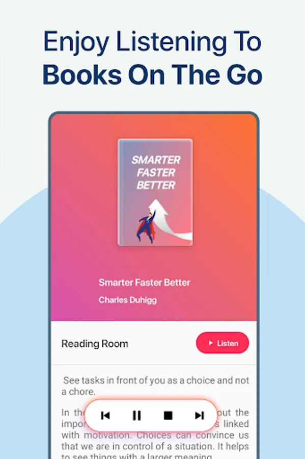 If you are a book lover looking for some good reads during your free time, then the book summary app free is the best choice. We have an endless collection of short shots story of free book summaries. It is a great novel summary app, which enables you to listen to or read several book summaries free.