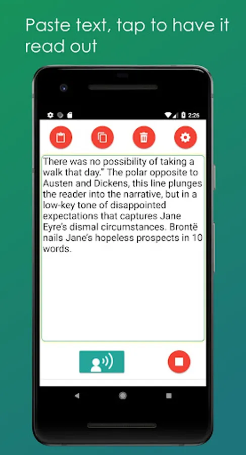 Read out Text has many potential uses, a mobile text reader is particularly useful if you have trouble speaking (or are mute). Or as a study tool for listening to or revising something that you don't want to read or that you want to memorise through repeatedly listening to.