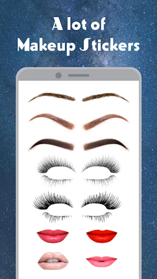 - Lips makeup, eyebrow makeup and eyelashes makeup