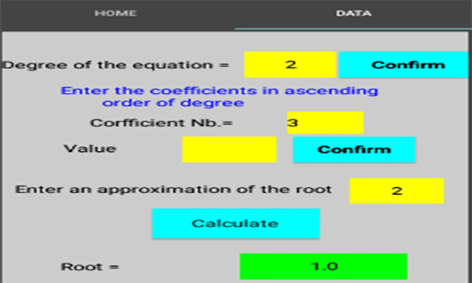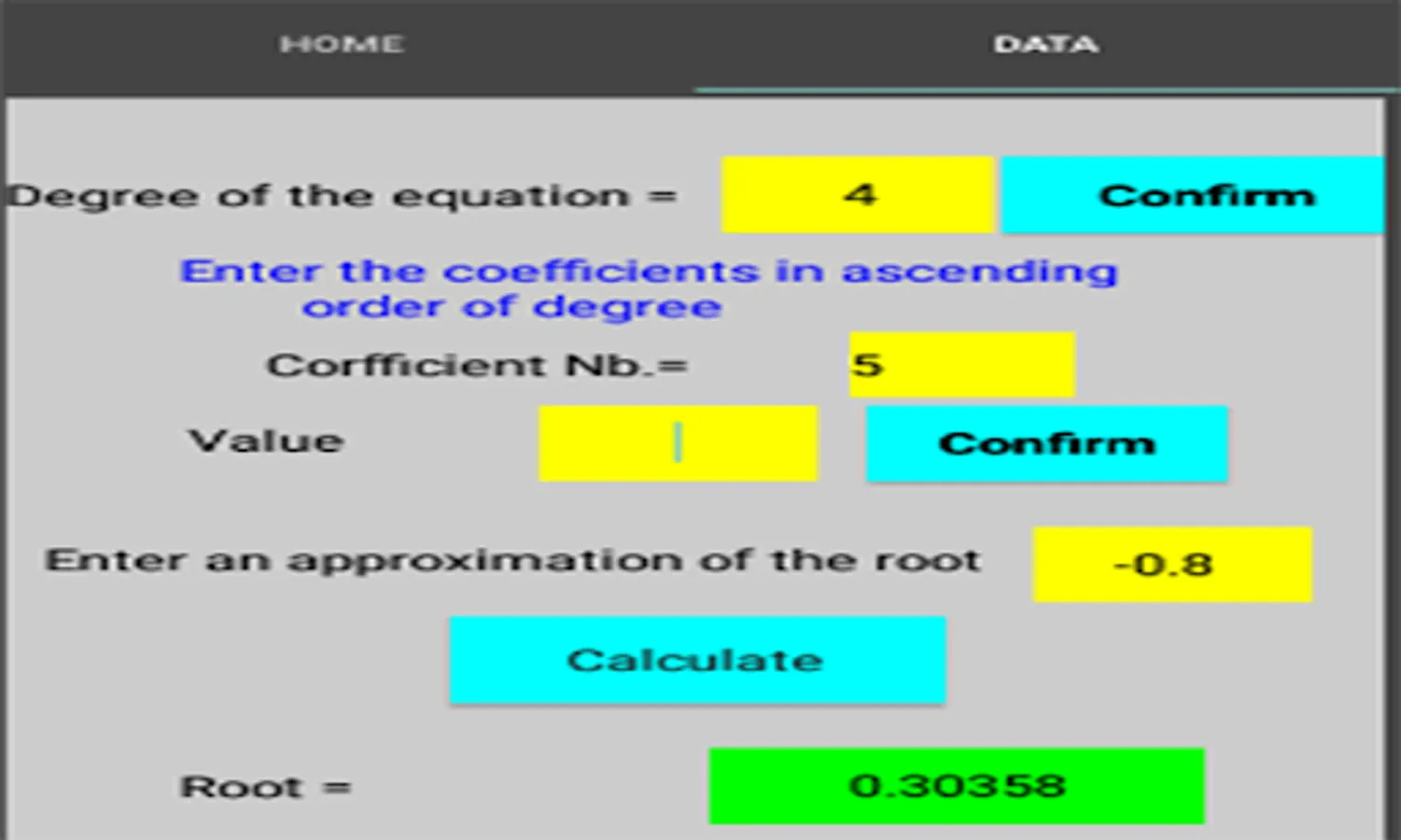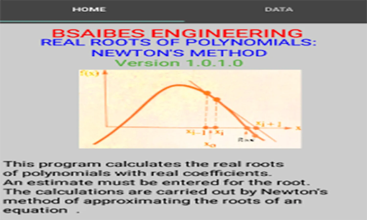 An estimate must be entered for the root. The calculations are carried out by Newton's method of approximating the roots of an equation .