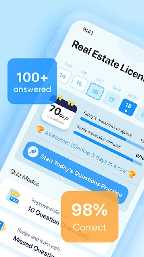 Real Estate Exam Prep 2026 is an exam preparation application that will help you pass the real estate agent licensing exam with a high score in your first attempt.