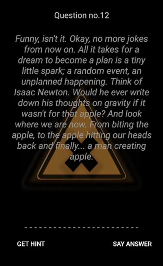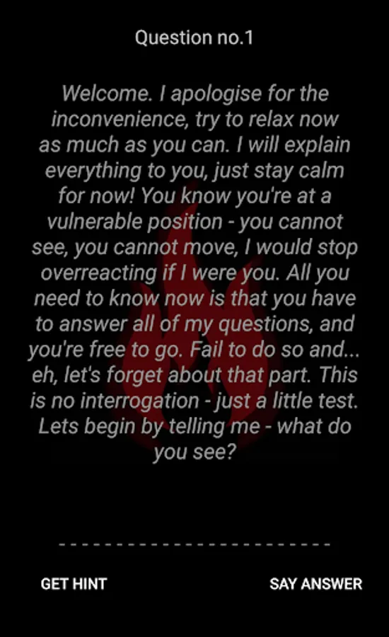 Temptress is a unique riddle game. You wake up tied on a chair, blindfolded - the only thing you can hear around you is the voice of a young woman. You don't have any options other than answer her riddles. Some questions have references to movies, music, culture, religion, history... others require logic.