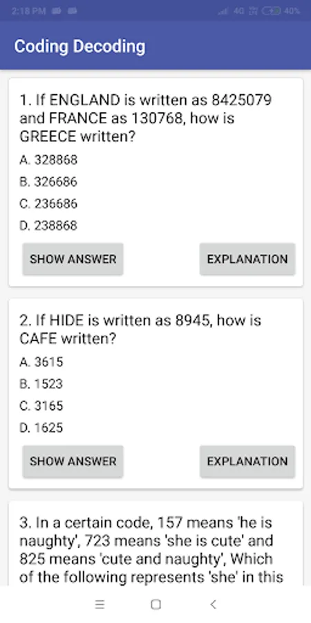 ✅ This application has huge collection of logical reasoning aptitude puzzles under different categories such as: